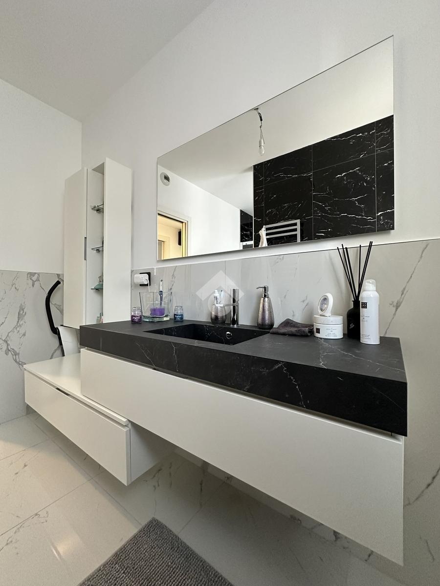 L'immobile è caratterizzato da finiture extra capitolato, eseguite nel 2021, come pavimentazione zona giorno e bagni in gres effetto marmo, parquet in teak a listoni, infissi a basso emissivo bianchi, pavimentazione del locale mansardato in gres effetto legno, impianto di aria condizionata, videosorveglianza, antifurto, aspirapolvere centralizzato, zanzariere, ventilazione meccanica, canna fumaria per camino, DOMOTICA ect..