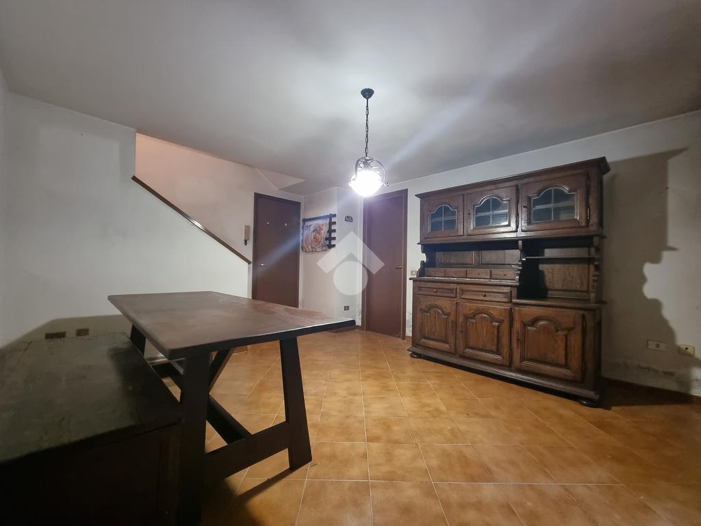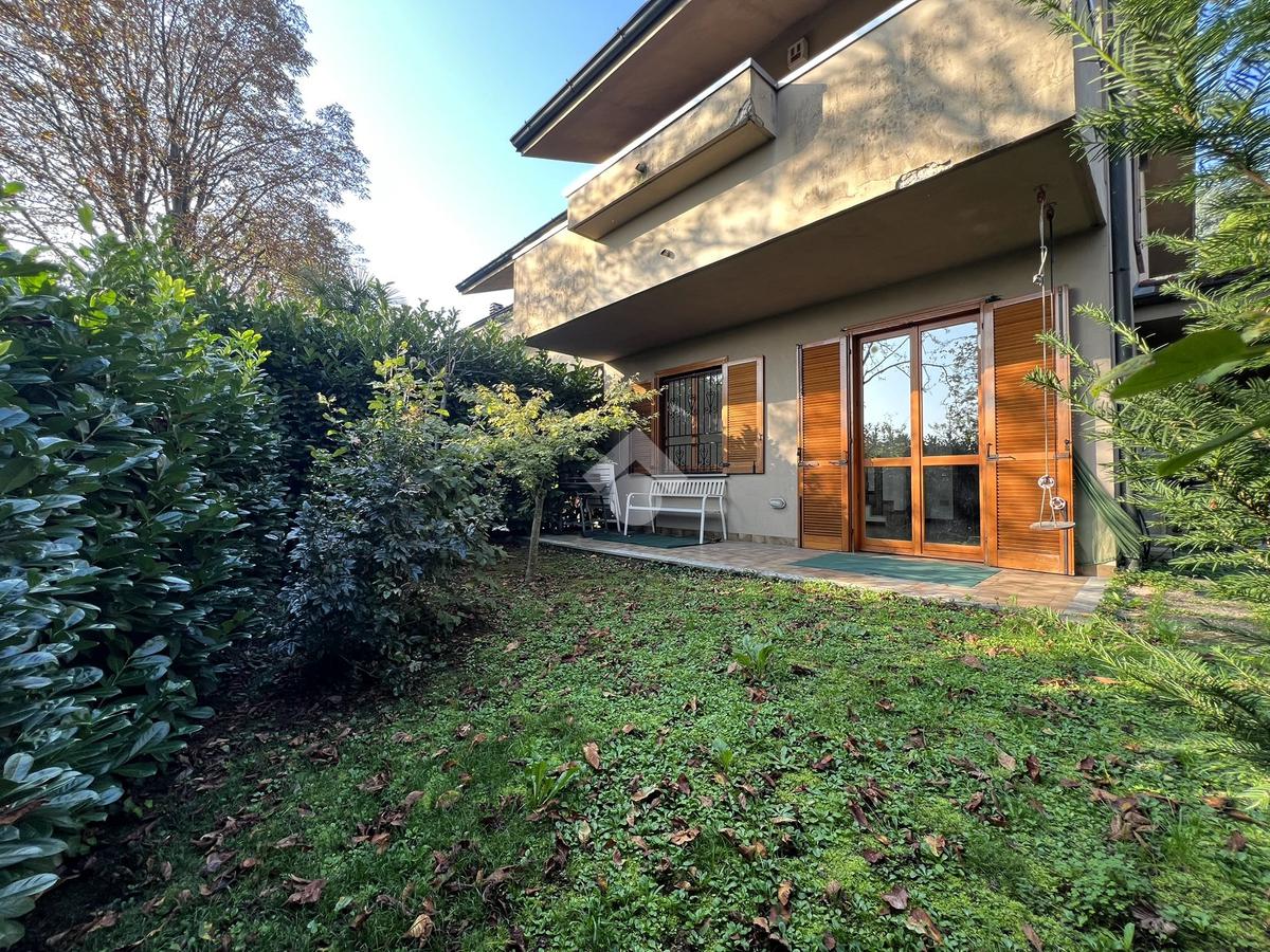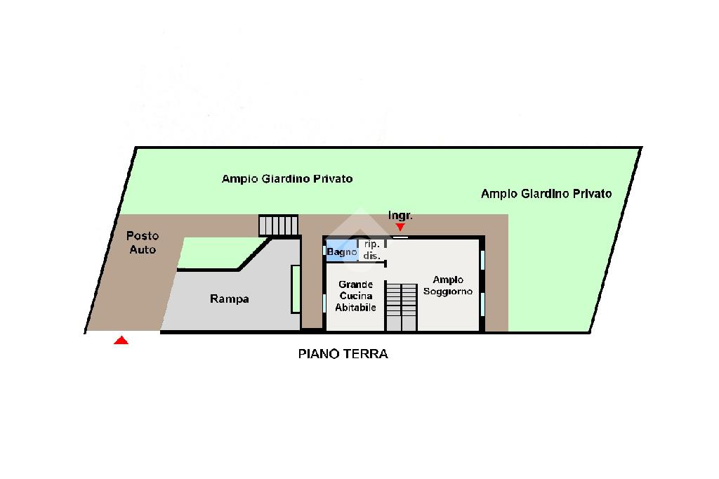 Internamente è organizzata su due piani abitativi di circa 60 mq ciascuno così distribuiti, al piano terra troviamo l'ingresso che serve la grande zona giorno composto da soggiorno doppio con accesso diretto al giardino privato, l'ampia cucina abitabile con un balcone e il bagno finestrato con nicchia ripostiglio ricavata nel disimpegno.