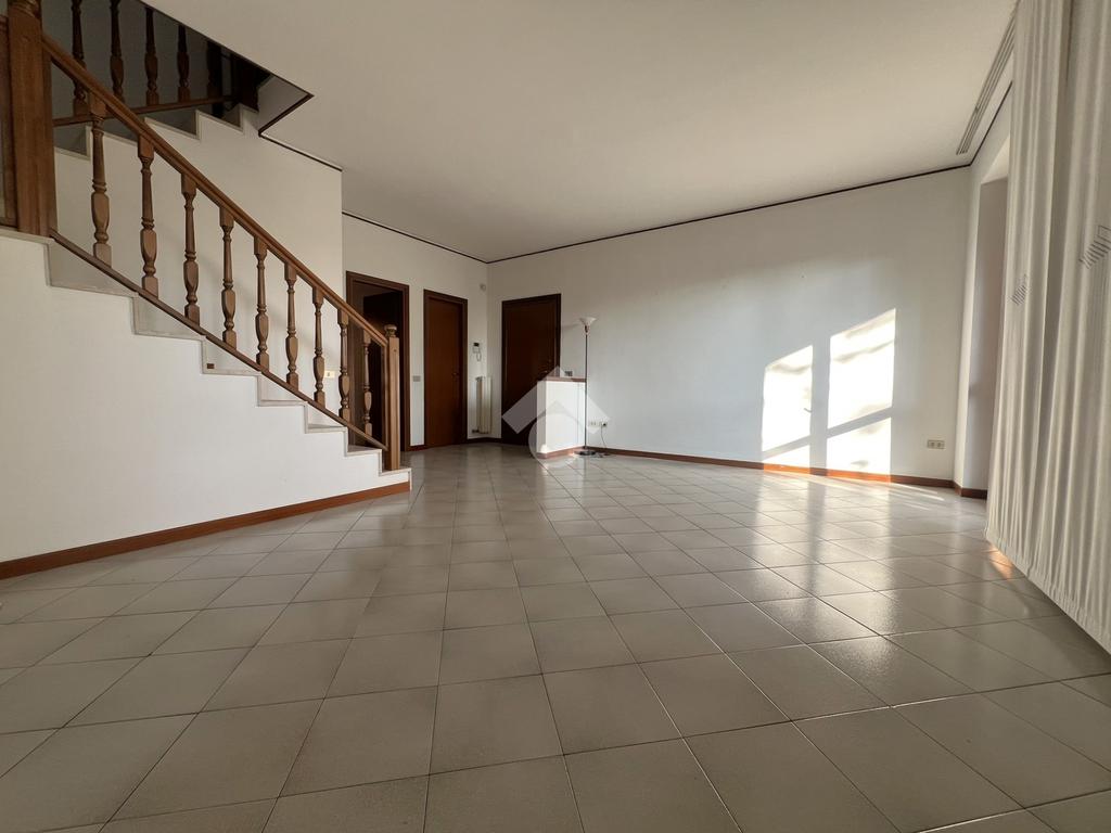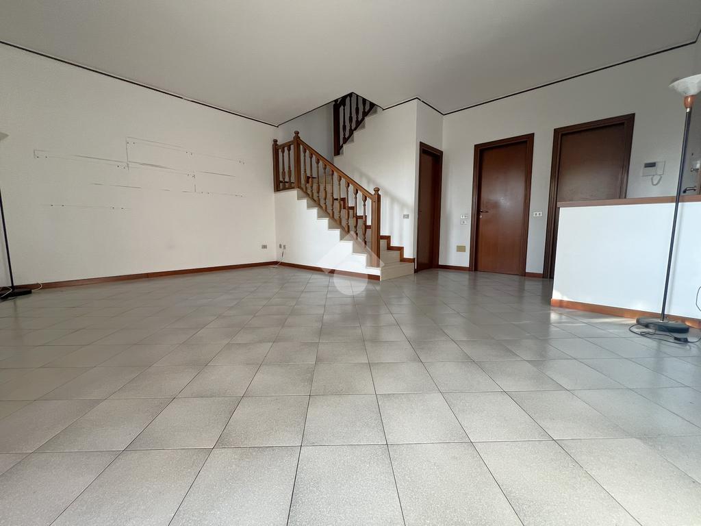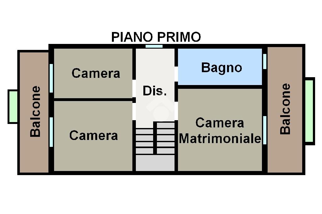 Tramite la comoda scala interna in muratura e posizionata centralmente si accede al piano primo dove troviamo la camera matrimoniale con accesso ad un terrazzino loggiato, il bagno di generose dimensioni e due camerette con l'accesso ad un ulteriore terrazzino.