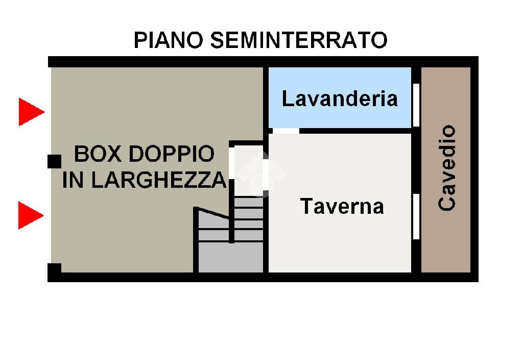 Dalla stessa scala si accede al piano seminterrato dove troviamo la taverna con accesso ad un ambiente intercapedine e un bagno/lavanderia e l'accesso diretto al grande box DOPPIO IN LARGHEZZA con doppia apertura.